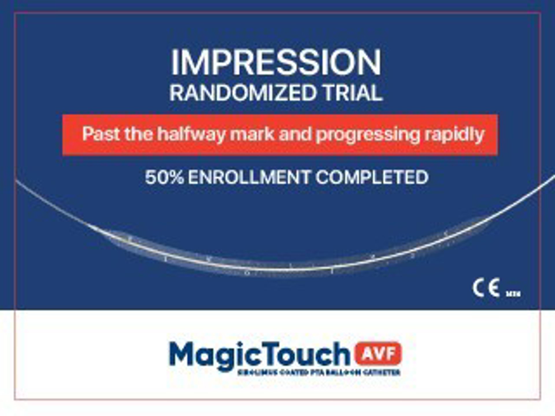 El ensayo aleatorio IMPRESSION inscribió a su paciente índice el 11 de enero de 2021 para evaluar la eficacia del balón recubierto de sirolimus Magic Touch frente al balón simple de placebo en la fístula disfuncional. Desde entonces, el RCT prospectivo, multicentro y de dos brazos de grupos paralelos continuó su tendencia de inscribirse rápidamente y ya cruzó la marca del 50 por ciento de inscripción en poco más de 10 meses.