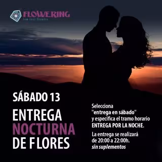 Sin salir de casa, los encargos pueden realizarse ya desde la tienda online de floristerias www.flowering.es floristeria online donde se ha habilitado una opción de "entrega por la noche" sin coste añadido. La entrega se llevará a cabo de 20:00 a 22:00 horas directo desde la floristeria FLOWERING más cercana al domicilio de entrega.