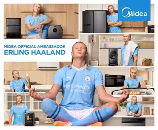 Para celebrar que Erling se ha convertido en el embajador oficial de la marca, Midea y el Manchester City han lanzado una campaña digital que da vida al slogan de la marca, "siéntete como en casa" al mostrar a Erling usando los productos Midea dentro de un ambiente hogareño, tranquilo, que invita a encontrar el equilibrio y el "poder" que necesita para su segundo hogar: el Etihad Stadium.