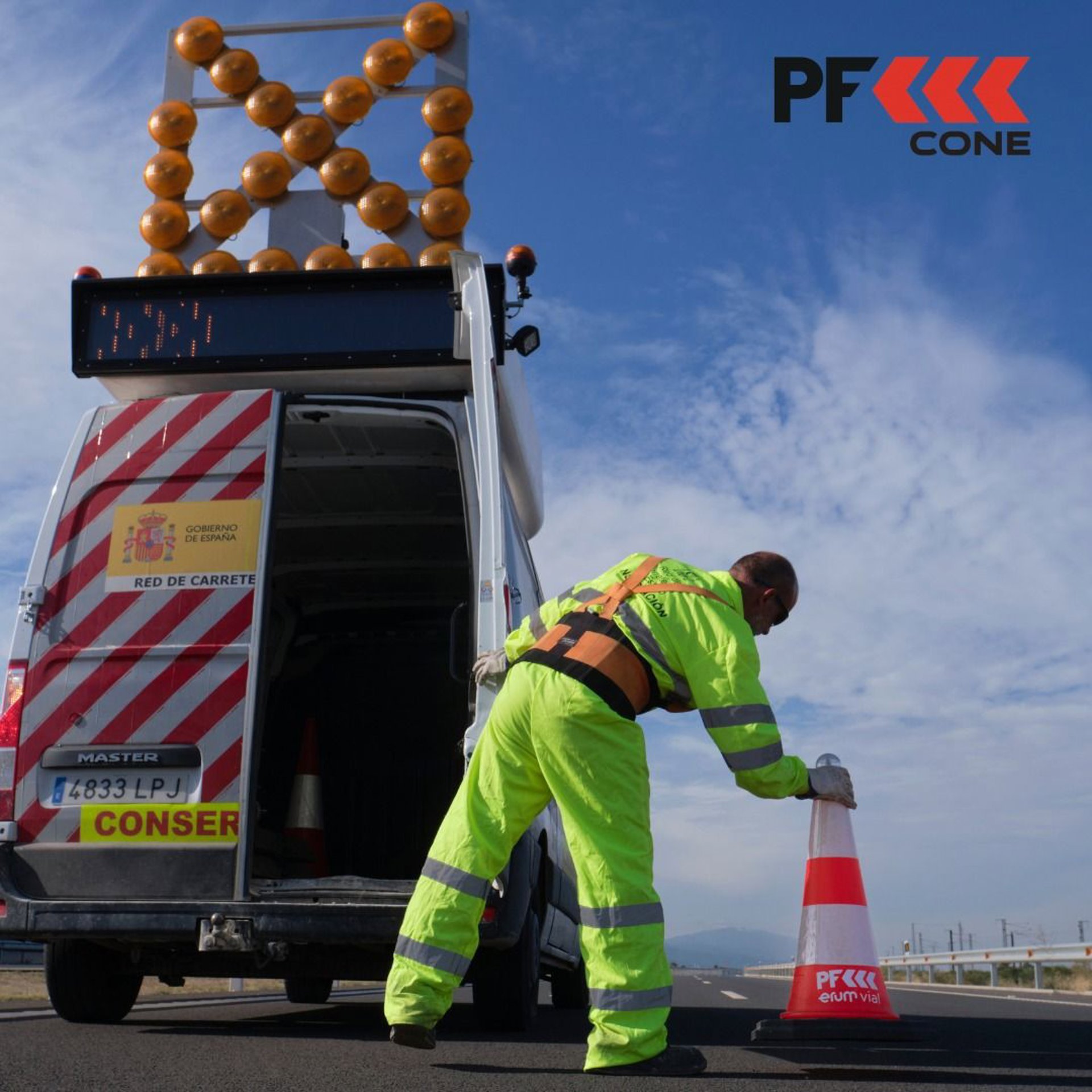 Para prevenir los riesgos de los usuarios que circulan por la vía, y mejorar la seguridad de los profesionales que trabajan en el mantenimiento de la carretera, nace el sistema de cono conectado PF CONE. Entre sus características, cabe destacar la incorporación de luces, sensores y localizadores que permitirán enviar información como la ubicación de la obra o la velocidad (en el caso de que sea un trabajo en movimiento). Ya están en desarrollo nuevas funcionalidades como la medición de la intensidad y las velocidades de circulación del tráfico, las emisiones o incluso la posibilidad de conocer información climatológica relevante, unos datos que permitirán mejorar la gestión y la seguridad en los trabajos de mantenimiento de la carretera.