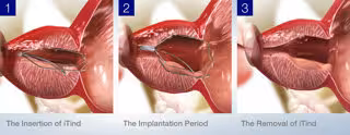 - 50 pacientes continuaron con el estudio multicéntrico prospectivo de un solo grupo más allá de los 36 meses posteriores al tratamiento. El estudio analiza los resultados de 41 de los 50 pacientes más allá de los 48 meses. Nueve de los 50 no estaban disponibles para el seguimiento: cinco pacientes se perdieron durante el seguimiento; dos pacientes fallecieron sin relación con la colocación del dispositivo iTind; y dos pacientes (seguimiento de 36 a 48 meses) requirieron retratamientos quirúrgicos (una resección transuretral de próstata, una enucleación de próstata con láser de tulio).