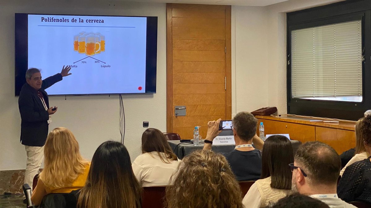 Respecto a la composición de la cerveza como bebida fermentada, el catedrático ha señalado que en general más del 90 % es agua, pero que también es importante tener en cuenta la presencia de otros ingredientes que aporta la cerveza y su efecto sobre la salud, como por ejemplo los minerales y vitaminas. Estudios científicos han sugerido que algunos componentes naturales presentes en la cerveza, como los polifenoles, podrían tener efectos prebióticos, es decir, fomentar el crecimiento de microorganismos beneficiosos en el intestino.