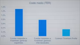 El estudio ha puesto de manifiesto que el TER medio de los fondos traspasados a Finanbest en el año 2021 es del 0,90%, con un coste máximo del 2,68%. Al distinguir los fondos de gestoras internacionales de los fondos de gestoras españolas, se observa un TER medio de 0,78% en el caso de fondos de gestoras extranjeras, y un TER medio del 1,31% para los fondos de gestoras nacionales, comparado con el TER medio de la carteras Profile (carteras de fondos de inversión perfiladas) de 0,33%. Esto quiere decir que, de media, los fondos comercializados por las entidades españolas tienen un coste 2,7 veces superior a los fondos que componen las carteras del gestor automatizado Finanbest y poniendo el foco en el caso de fondos de gestoras españolas el coste es casi cuatro veces superior.