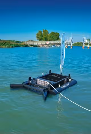 FLOATY: enables an uncomplicated removal of fuel and oil residues from the water surface at boat gaz stations or in marinas. Residues that repeatedly pollute the water, such as the oil loss whilst refueling a boat, are removed in a cost-effective and timely manner.