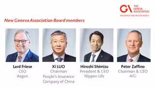 I also warmly welcome Lard Friese, Xi LUO, Hiroshi Shimizu and Peter Zaffino to the Geneva Association Board of Directors. As representatives of Europe, China, Japan and the United States, their views will be instrumental to ensuring our agenda captures the priorities of insurers around the globe."