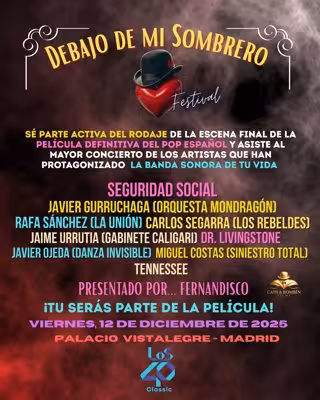 El próximo 12 de diciembre de 2025, el Palacio Vistalegre de Madrid se convertirá en un inmenso plató de cine y música con un espectáculo único de cuatro horas de duración. Las entradas ya están a la venta en www.TicketMad.es y www.debajodemisombrero.com