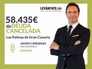 El famoso presentador de Levántate OK, Javier Cárdenas, ha realizado una nueva entrevista con una persona exonerada de sus deudas gracias a Repara tu Deuda, despacho de abogados líder en España en la Ley de Segunda Oportunidad. Se trata de uno de los primeros clientes del despacho, Manuel, residente en Las Palmas de Gran Canaria (Canarias).