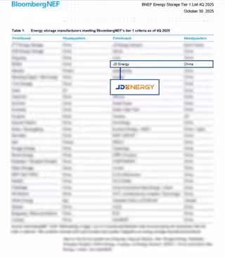 XI'AN, China, 5 de noviembre de 2025 /PRNewswire/ -- JDEnergy ha sido nombrada una vez más fabricante de almacenamiento de energía global de primer nivel por BloombergNEF (BNEF) para el cuarto trimestre de 2025, reafirmando su liderazgo en presencia en el mercado global, innovación tecnológica y solvencia financiera.