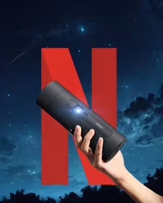 PicoFlix cuenta con una fuente de luz LED de alta calidad con 450 lúmenes ANSI y resolución FHD de 1080P, que proyecta hasta 150 pulgadas. Transforma cualquier espacio en una experiencia de visualización envolvente, ya sea en la pared de una sala de estar, en el techo de un dormitorio o durante actividades al aire libre.
