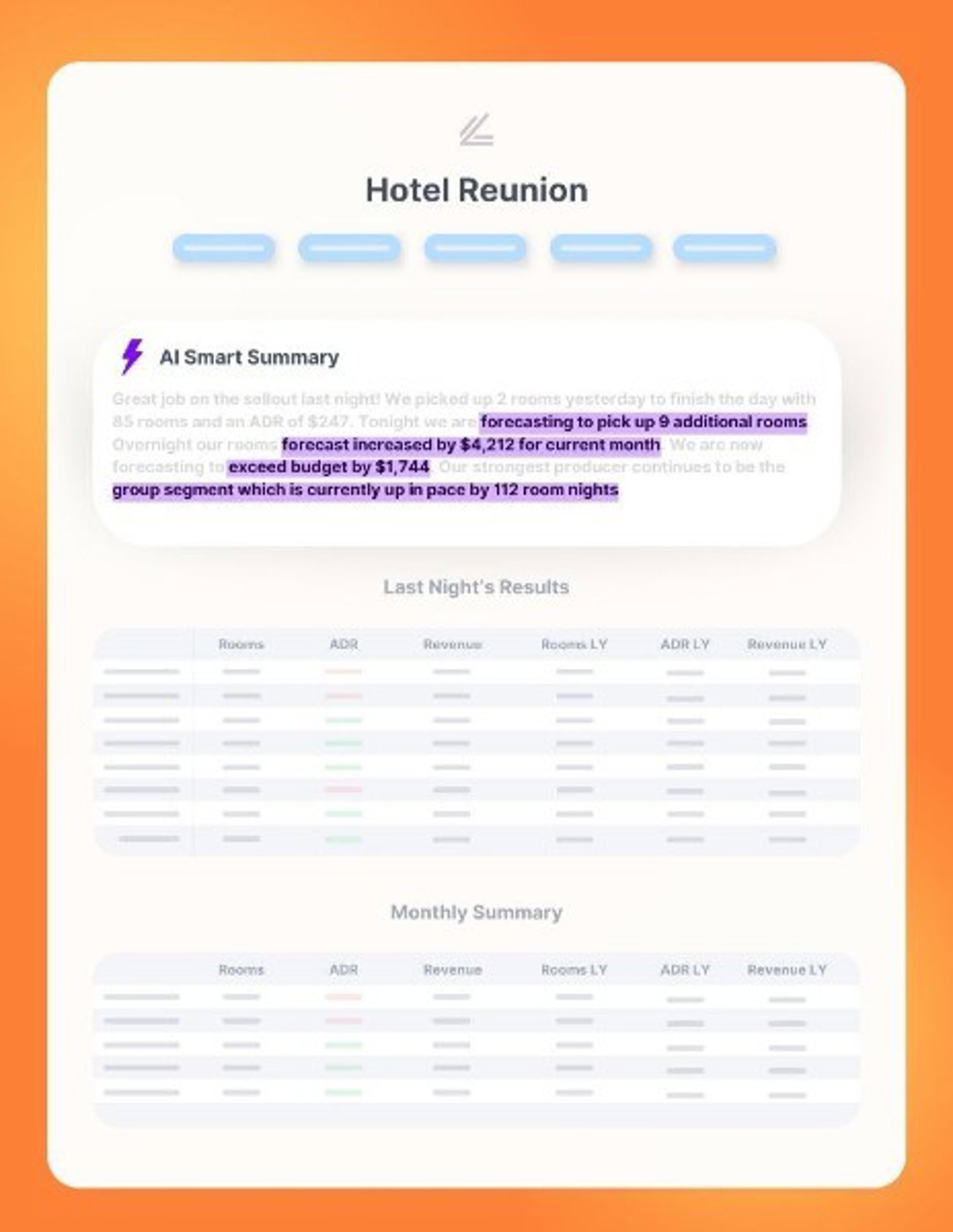 En primicia en el sector, Lighthouse aprovecha los avanzados modelos de aprendizaje de GenAI para ofrecer a los profesionales hoteleros resúmenes de rendimiento diarios personalizados directamente en su bandeja de entrada. Esta avanzada tecnología se ha creado y entrenado rigurosamente utilizando vastos conjuntos de datos y decenas de miles de resúmenes de rendimiento escritos por humanos como parte de los modelos de entrenamiento. Los resúmenes inteligentes son capaces de captar y resumir cambios en la captación, ADR, segmentación y ocupación que antes tardaban horas en compilarse.