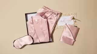 El Skin-Friendly Beauty Sleep Set, que incluye una 19 Momme Terse funda de almohada de seda, un antifaz de seda ideal para dormir, y cinco coleteros medianos de seda suave, también viene con un servicio de monogramas gratuito, que permite a los clientes personalizar su regalo, para que sea realmente único.