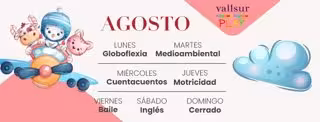 El servicio de ludoteca con custodia y las actividades tiene lugar en horario de lunes a viernes de 17 a 21 horas y sábados y festivos de 12 a 21 horas y los clientes podrán conseguir una hora gratuita al día con la tarjeta de fidelización de Vallsur. Además, durante el resto del horario de apertura del centro comercial, también se podrá disfrutar de la zona de atracciones con la que cuenta el recinto de la ludoteca acompañados de un adulto, un espacio en el que se encuentra un rocódromo, un laberinto de habilidad o una cabaña de juegos interactivos.