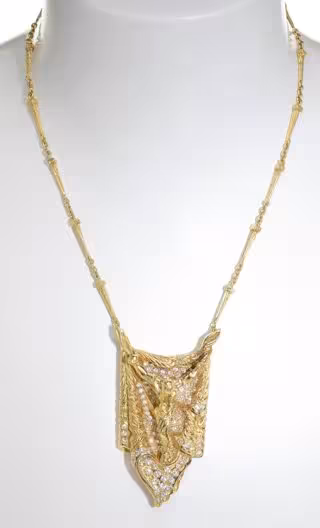 Por otro lado, de la cantidad de joyas disponibles en subasta y que tienen en cuenta esta vertiente artística, algunas de ellas son del extravagante y multidisciplinario Salvador Dalí. Comenzando su diseño en 1941 y aplicando su enfoque idiosincrásico simbólico a los objetos tradicionales, las joyas que él creaba eran según el artista piezas serias. Dalí fabricó alrededor de 40 joyas y estuvo muy involucrado en todos los pasos de la producción junto al joyero barcelonés Octavi Sard. Dalí seleccionó las piedras en función del color y sus asociaciones simbólicas, pero el diseño y la construcción de cada pieza eran su prioridad. Su esmerada artesanía y su singular imaginación es lo que hace que las joyas de Dalí sean tan geniales.