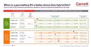El análisis de Garrett complementa las conclusiones de otros estudios de ACV al evaluar factores como una amplia gama de tecnologías electrificadas (100% eléctrica, híbrida suave, híbrida, híbrida enchufable), diferentes segmentos de vehículos (compactos, SUV, deportivos y comerciales ligeros), el uso medio real de los vehículos en Europa, así como la intensidad de la generación de energía eléctrica para la producción y la carga de las baterías.