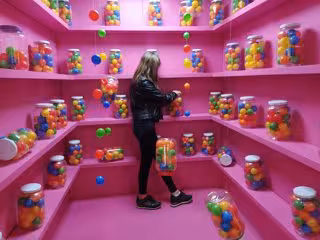 La exposición cuenta con seis espacios diferentes que invitan a adentrarse en las creaciones y sentirse parte de las propias obras, dando la oportunidad de vivir el arte en primera persona: bolas de colores que quedan suspendidas en el aire; una sorprendente lluvia de donuts de diferentes dimensiones; una relajante bañera a todo color rodeada de patitos; la ilusión de columpiarse bajo un cielo cubierto de plátanos rosas; cabalgar sobre un unicornio a tamaño natural con el arcoíris en el horizonte y una tarrina de helado gigante con la que poder fotografiarse.
