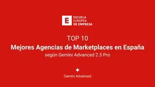 La Escuela Europea de Empresa (EEE) presenta su nuevo estudio ‘Las Mejores Agencias de Marketplaces en España: Guía Estratégica para la Gestión y el Crecimiento de Ventas en 2025’, elaborado con la tecnología de inteligencia artificial Gemini Advanced 2.5 Pro. El informe ofrece una visión actualizada de los actores más destacados en la gestión profesional de ventas en marketplaces, un canal que se consolida como medio de expansión para empresas de todos los tamaños.