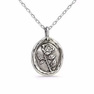 The Silver Rose es un colgante reversible fabricado artesanalmente en los talleres de Joyería Nicols, firma centenaria con taller propio y referente en joyería artesanal en España. Por un lado, escamas de dragón —fuerza, protección, origen. Por el otro, una rosa —amor, belleza, tradición. Dos símbolos que dialogan entre sí y que encapsulan el corazón de la historia.