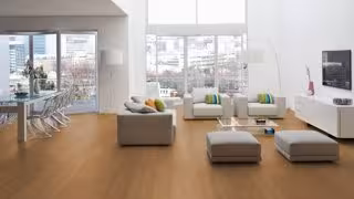 El suelo MOSO Bamboo Prestige es una solución de bambú macizo que se distingue por su impresionante diseño y su excepcional rendimiento. Con las lamas más largas y anchas de la gama de tarimas de bambú MOSO (2440 x 300 x 18mm), este suelo combina estética y durabilidad en un solo producto.