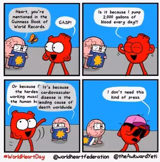 La WHF también se ha asociado con Nick Seluk, artista e ilustrador de cómics cuyo personaje, Awkward Yeti, tiene más de 1,9 millones de seguidores en Instagram en todo el mundo. Las ilustraciones de Seluk sobre temas relacionados con el cuidado de la salud, como esta realizada para la WHF, han atraído la atención de los profesionales médicos y del público general debido a sus contundentes mensajes de concientización.