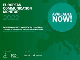 Acerca de European Communication Monitor 2022El European Communication Monitor es organizado anualmente por la Asociación Europea de Educación e Investigación en Relaciones Públicas (EUPRERA) y la Asociación Europea de Directores de Comunicación (EACD), con el apoyo del socio premium Cision, el socio de comunicación digital Fink & Fuchs, y los socios regionales #NORA en los países nórdicos y CECOMS en Italia. La serie Global Communication Monitor es conocida como la investigación más completa en este campo en todo el mundo, con una cobertura de más de 80 países. La encuesta europea se complementa con encuestas bianuales en otras regiones como Asia-Pacífico, América Latina y América del Norte. www.communicationmonitor.eu