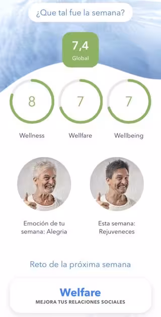 Con base al coeficiente evolutivo, el resultado semanal también indica si se ha envejecido o rejuvenecido, "porque la longevidad tiene que ver con nuestro bienestar", según el doctor Grimaldos.