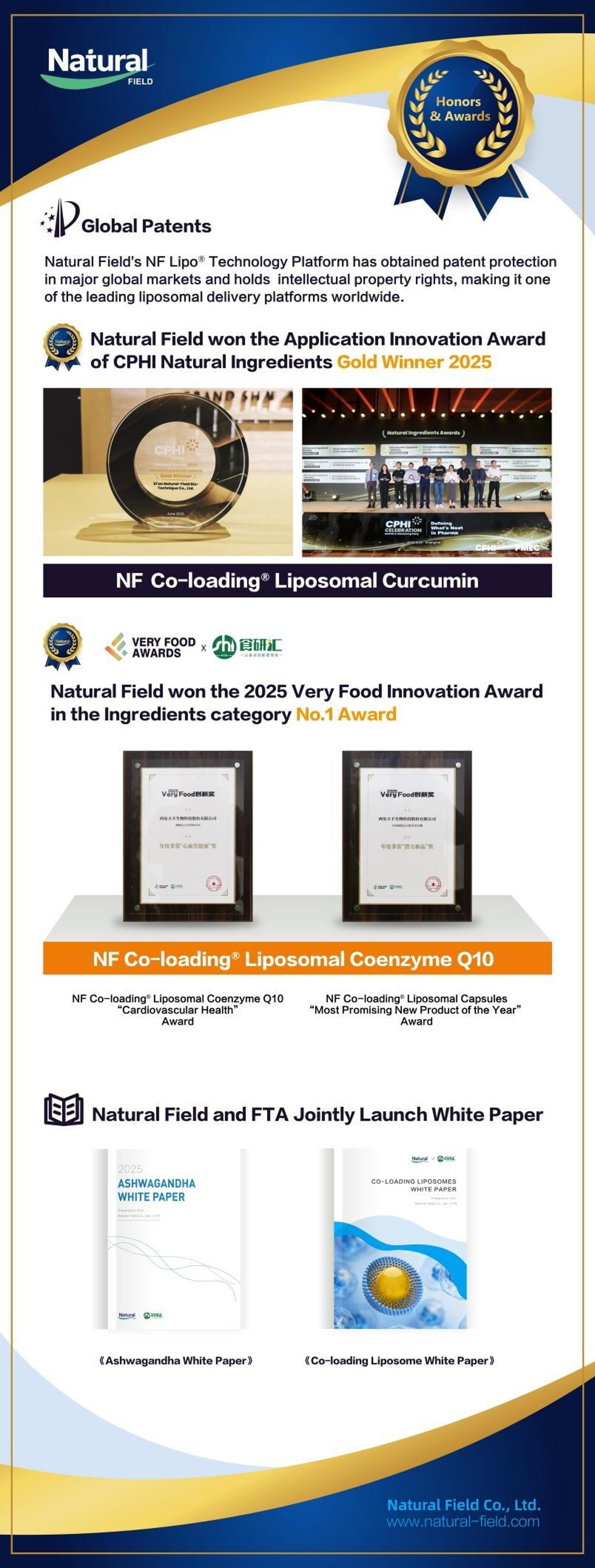 Además de los lanzamientos de investigaciones, los productos de liposomas de carga conjunta de Natural Field recibieron un reconocimiento notable del programa de los 2025 Very Food Awards: