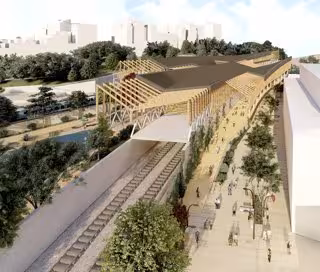 El proyecto Supra plantea la creación de una universidad de artes escénicas en LHospitalet de Llobregat mediante un nuevo equipamiento que integra elementos como rampas, ascensores y rampas mecánicas para favorecer la movilidad de todos los usuarios. El proyecto se basa en la creación de una infraestructura-puente con la que se pretende superar la segregación urbana entre tres barrios de la ciudad. Para ello, la propuesta plantea la densificación del espacio sobre las vías del tren que atraviesan LHospitalet y la transformación de los espacios intersticiales e infrautilizados en un nuevo parque lineal. A su vez, el equipamiento aspira a ser energéticamente autosuficiente, mediante el aprovechamiento de la energía renovable obtenida de la vibración del viento generada por el paso de los trenes por las vías.