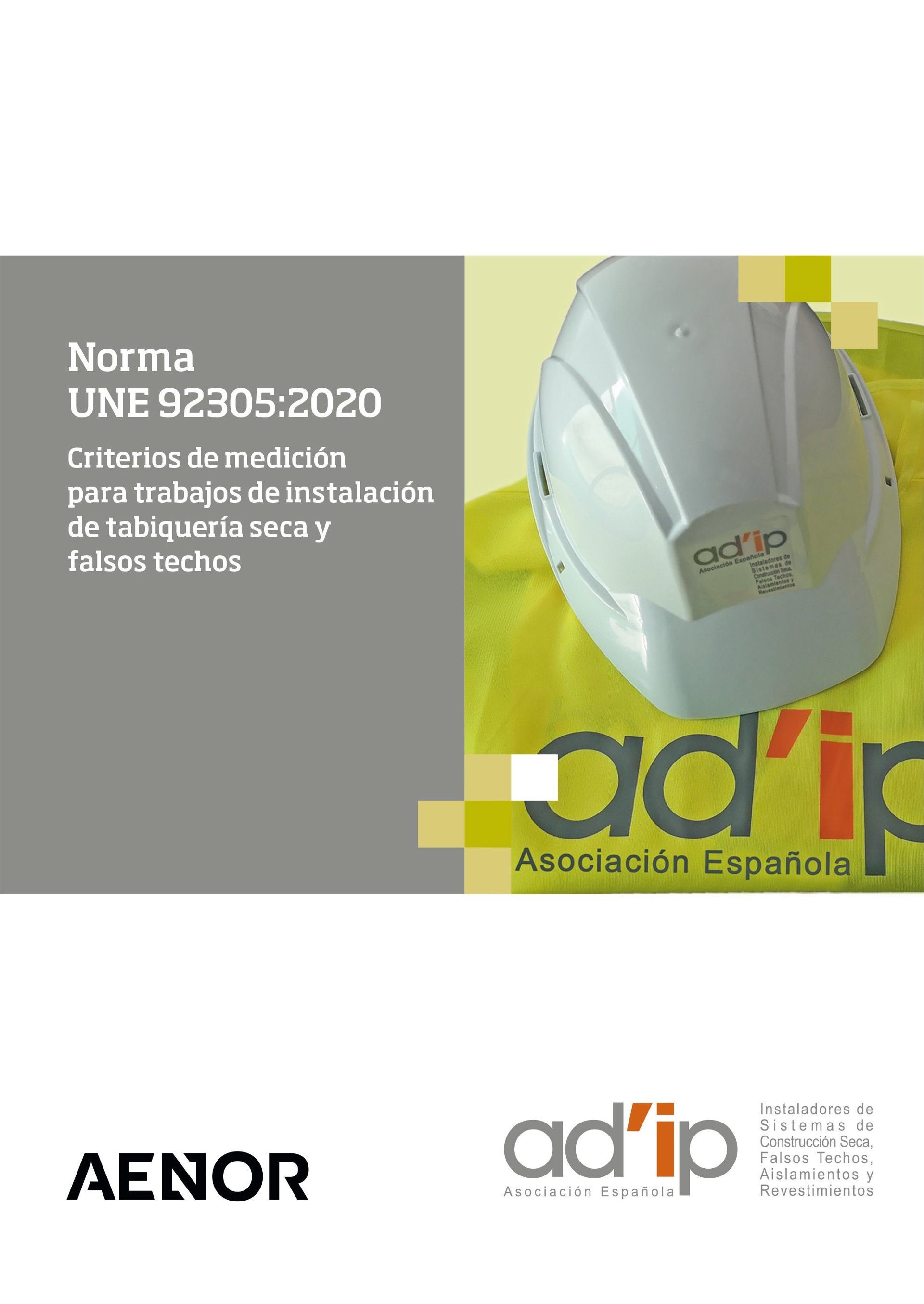 La NORMA UNE 92305:2020, "Criterios de medición para trabajos de instalación de tabiquería seca y falsos techos" es una herramienta de conocimiento y de criterios objetivos y consensuados para una adecuada valoración del trabajo desarrollado por el Instalador de estos sistemas y a quien representa la Asociación Española ADIP. El acuerdo entre Fabricantes, Instaladores y Arquitectos Técnicos para publicar unos criterios comunes reconocidos es un gran éxito de trabajo conjunto y de aportación al sector