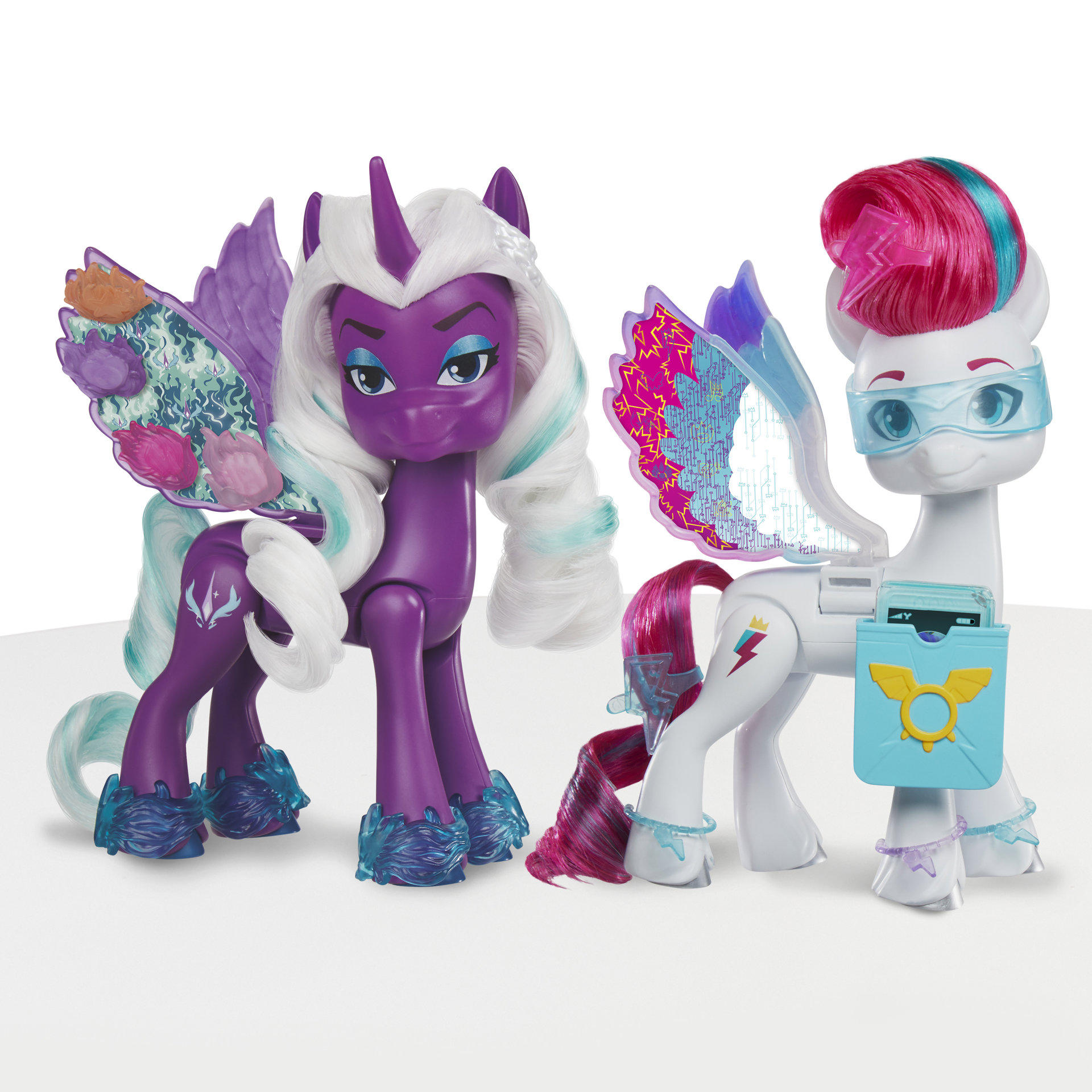 Los amantes del vuelo estarán encantados de pasar las tardes en compañía de My Little Pony sorpresas en las alas. Un pony mágico con bellas alas que se mueven al juntar sus patas, con un cabello largo perfecto para poder peinarla y crearle infinidad de peinados. Todos sus accesorios están inspirados en los personajes favoritos para que los niños puedan vivir maravillosas y mágicas tardes.