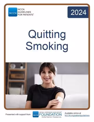 Las Guías para pacientes de la NCCN: Dejar de fumar ofrece una perspectiva nueva y una esperanza renovada a quienes han intentado dejar de fumar sin éxito y a quienes quieren dejar de fumar, pero aún no han dado los primeros pasos. El libro adopta un enfoque alentador y libre de juicios, reconociendo que los deslices y los lapsus son comunes y que una combinación de terapias, en lugar de una solución única para todos, es a menudo la clave del éxito. Presenta múltiples opciones basadas en pruebas, incluidos detalles sobre la terapia de sustitución de nicotina (TSN), la terapia conductual y los medicamentos sin nicotina.