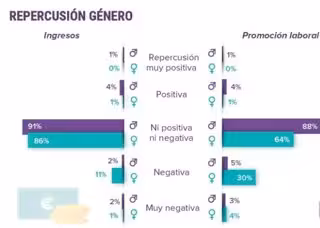 - Casi un tercio de las médicas (29%), frente al (9%) de los médicos, dijeron haberse visto afectadas personalmente por la desigualdad de género en su trabajo. Esto fue más frecuente entre las médicas más jóvenes (36%) que entre las mayores de 45 años (27%). Para el 11% de las encuestadas, el género tuvo un impacto negativo en sus ingresos y para el 30% afectó negativamente a su desarrollo profesional