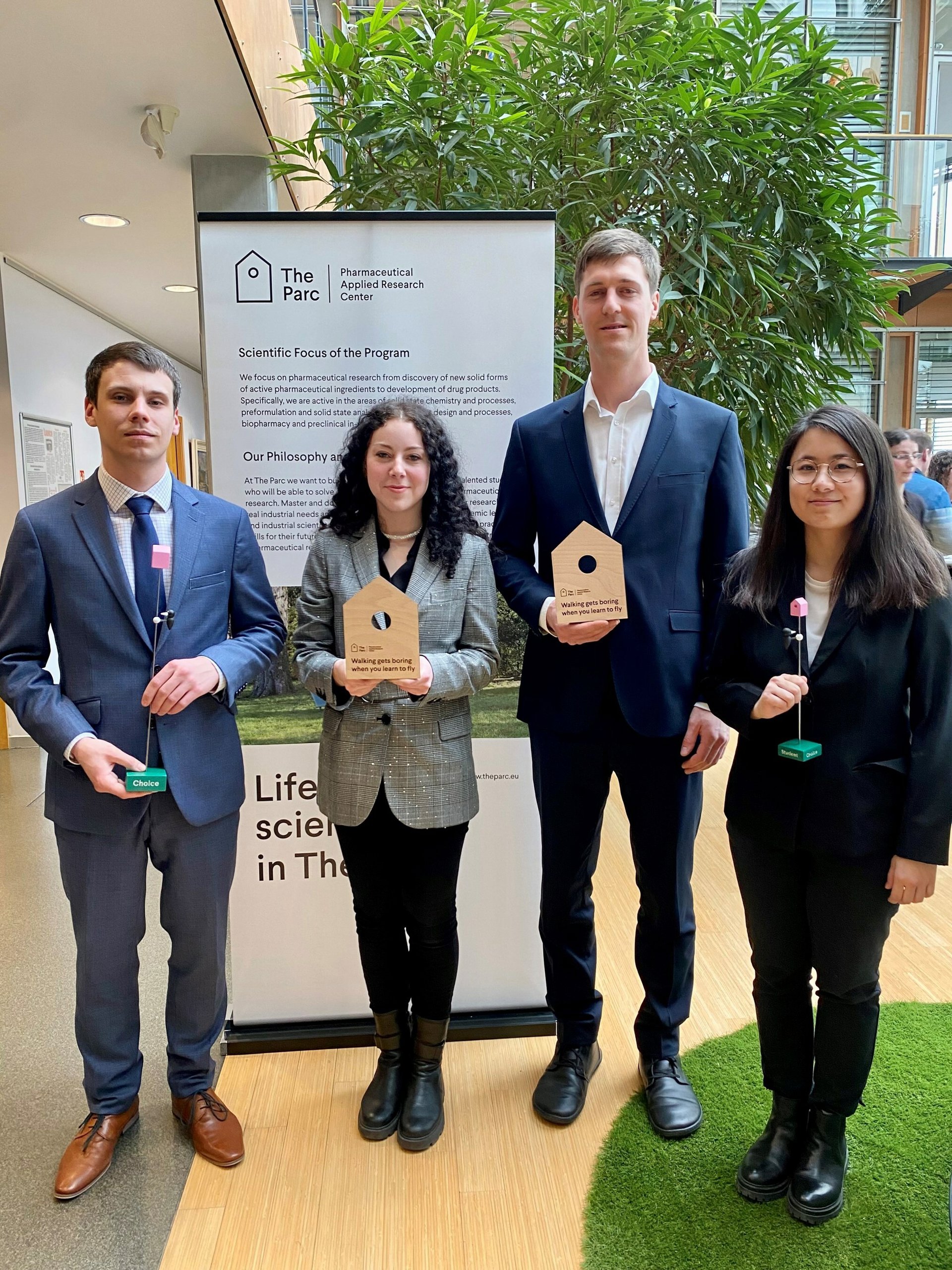 Los estudiantes de doctorado de The Parc recibieron los premios The Parc Awards en dos categorías. En la categoría Premio Parc Student, Thao Tranová ganó con el proyecto "Comprimidos bucodispersables preparados a partir de materiales atomizados". El segundo premio para estudiantes fue para Martin Krov por su proyecto "Desarrollo de alto rendimiento y fabricación continua de sistemas SMEDD", y el tercer premio fue para Elizaveta Mutylo por su trabajo "Liberación programable de fármacos a partir de formas de dosificación de unidades múltiples". En la segunda categoría, el Parc Supervisor Award, Ondej Navrátil obtuvo una puntuación con su investigación sobre el tema "Liberación programable de fármacos desde sistemas de gránulos de unidades múltiples".