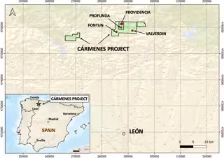El proyecto Cármenes es un área altamente potencial para la mineralización de pipas de brecha de carbonato, con evidencias de altas leyes de cobre, níquel, cobalto y oro. Las prioridades iniciales de exploración incluyen las antiguas zonas mineras de Profunda y Providencia, con el objetivo de ampliar la mineralización de cobre, níquel y cobalto por debajo de estas antiguas explotaciones mineras, y los gossan cartografiados recientemente. En toda la zona del proyecto existen numerosas explotaciones mineras históricas de menor tamaño, que ponen de relieve el potencial de otras pipas de brecha y otros estilos de mineralización.
