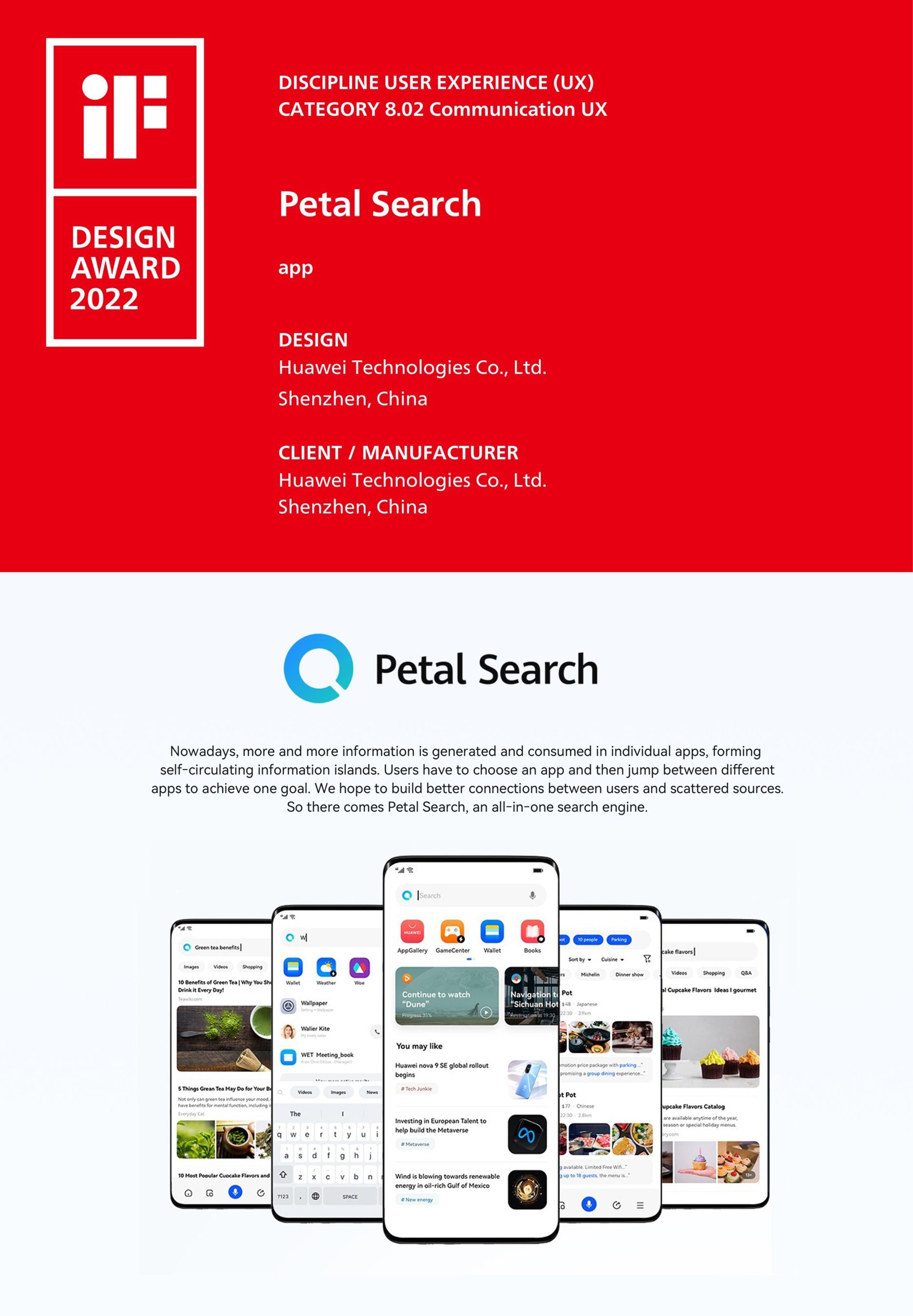 Petal Search wins iF Award 2022 - PETAL SEARCH, HUAWEI/PR NEWSWIRE