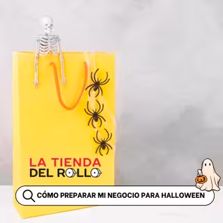1.Decoración temática:incorporar calabazas, esqueletos, telas de araña y luces tenues para lograr un ambiente espeluznante. Los clientes se sentirán más atraídos a visitar losestablecimientos. Hay que recordarque en La Tienda del Rollo se pueden encargar bolsas de papel con cualquier diseño que se quiera, incluido de Halloween.