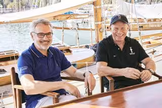 Barcelona, 16 de julio de 2022 El capitán del equipo de vela de Nueva Zelanda, Grant Dalton, ha participado en la entrega de premios de la regata Puig Vela Clssica Barcelona, organizada por el Real Club Náutico y Puig, que ha concluido esta tarde. El Presidente Ejecutivo de Puig, Marc Puig, y el prestigioso regatista han participado en la ceremonia de clausura y han conversado sobre los valores de este deporte y los desafíos de la organización de la Copa de América en 2024 en Barcelona.