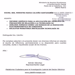 Ante este escenario de negligente incumplimiento por parte del Gobierno, la Plataforma Ciudadana QAE registró en el Ministerio de Asuntos Económicos y Transformación Digital el 28 de julio 2020 una petición de Moratoria al 5G así como un análisis jurídico sobre los riesgos de la radiación electromagnética no ionizante, por lo que se debe proceder a activar el Principio de Precaución establecido en el artículo 191 del Tratado de Funcionamiento de la Unión Europea.