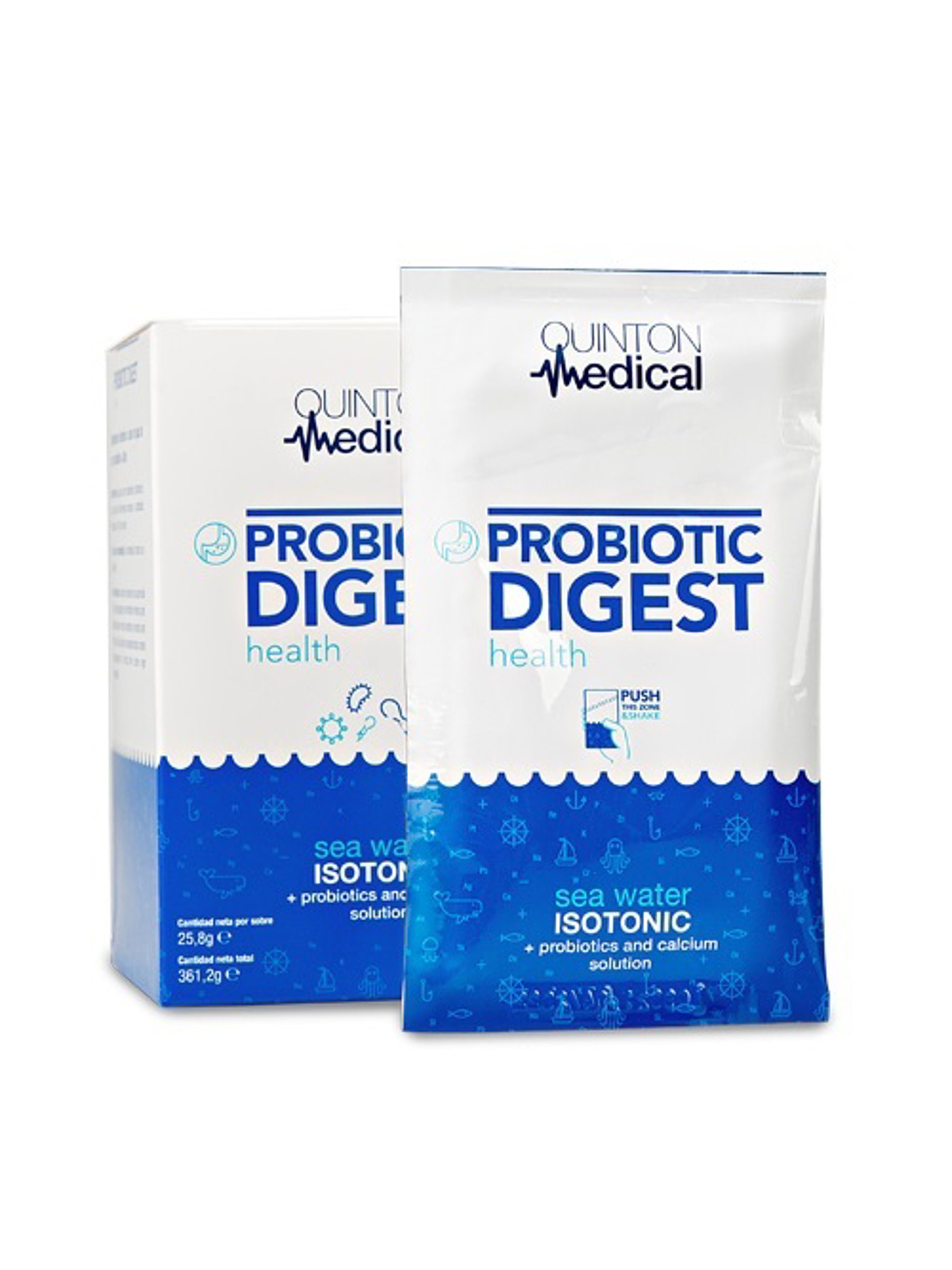 El nuevo lanzamiento es Probiotic Digest Health. Es un complemento alimenticio a base de agua de mar isotónica, probióticos y calcio. Quinton Medical Probiotic Digest Health se compone de dos partes fundamentales: una primera de 800mg mezcla de probióticos; y una segunda con 25 ml de agua de mar isotónica Quinton. La combinación de ambas especialidades en un único suplemento oral lo convierten en el primer probiótico con agua de mar existente en el mercado. Además, las especies probióticas que conforman la mezcla utilizada en Quinton Medical Probiotic Digest Health (Lactobacillus rhamnosus y Kluyveromyces marxianus) han sido aisladas a partir de la microbiota intestinal de sujetos sanos.