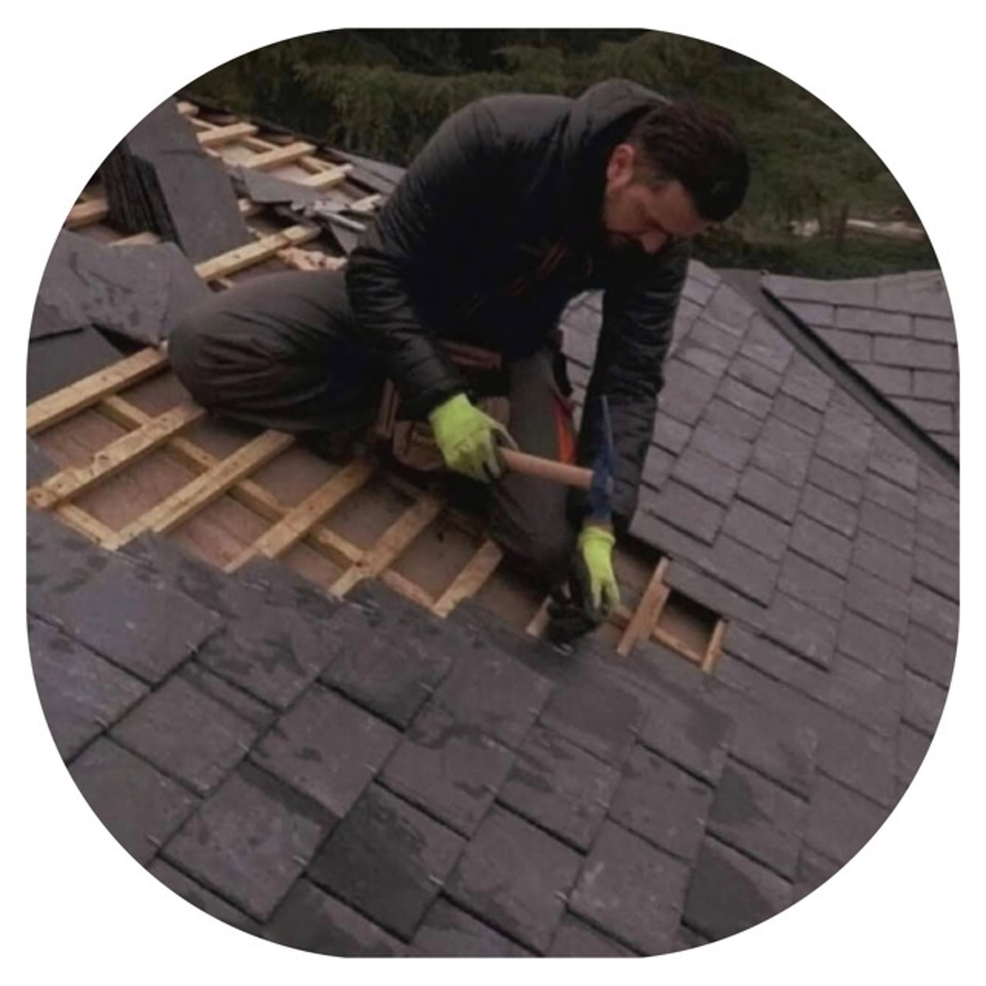 Pie de foto: Pizarrista reparando tejado Autor: TEJADOS DE PIZARRA ANDRES RAMOS
