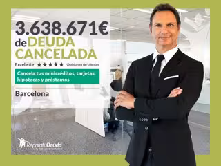 Repara tu Deuda Abogados, despacho de abogados líder en España en la Ley de Segunda Oportunidad, ha conseguido la cancelación de 3.638.671 euros de deuda en la provincia de Barcelona (Catalunya). Un total de 37 nuevos casos han sido gestionados por el despacho con resultados satisfactorios para los intereses de los concursados.
