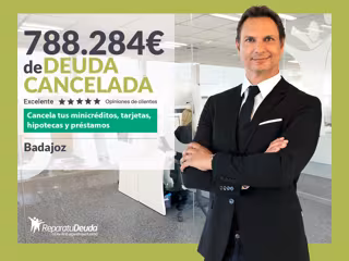 Repara tu Deuda Abogados, despacho de abogados líder en España en la Ley de Segunda Oportunidad, ha conseguido la cancelación de 788.284 euros de deuda en Badajoz (Extremadura). Se trata de dos nuevos casos gestionados satisfactoriamente por el despacho en la provincia en un mes.