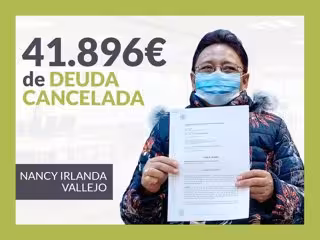 "Nancy Irlanda acudió a nosotros en una situación crítica. Había acumulado una deuda que ascendía a 41.896 euros con cinco bancos y, con una nómina de 900 euros, no podía hacer frente a los pagos. De este modo, introducen el caso de Nancy, actualmente residente en Tarragona, Separada sin convenio. Con una nómina de 900 euros y con una ayuda para el pago del alquiler de 140. Ha conseguido mantener su vehículo después de obtener la cancelación de las deudas. Hizo una dación en pago de su piso y le quedó un remanente de unos 17.000 eur, no pudo afrontarlo y se le fueron acumulando intereses. Eso le llevó a solicitar prestamos pequeños con los que iba pagando lo que debía mes a mes, engrosando su situación respecto a las deudas, hasta que vio un anuncio en televisión de Repara tu Deuda abogados, despacho pionero en España en la aplicación de la Ley de Segunda Oportunidad.