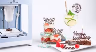 La impresora 3D de chocolate mycusini permite por primera vez a los amantes del chocolate producir fácilmente desde la comodidad de su hogar deliciosas y creativas figuras de chocolate para decorar tartas, postres y mucho más.
