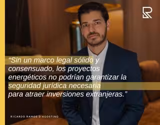 "Sin un marco legal sólido y consensuado, los proyectos energéticos no podrían garantizar la seguridad jurídica necesaria para atraer inversiones extranjeras", afirma Ricardo Enrique Ramos D’Agostino.