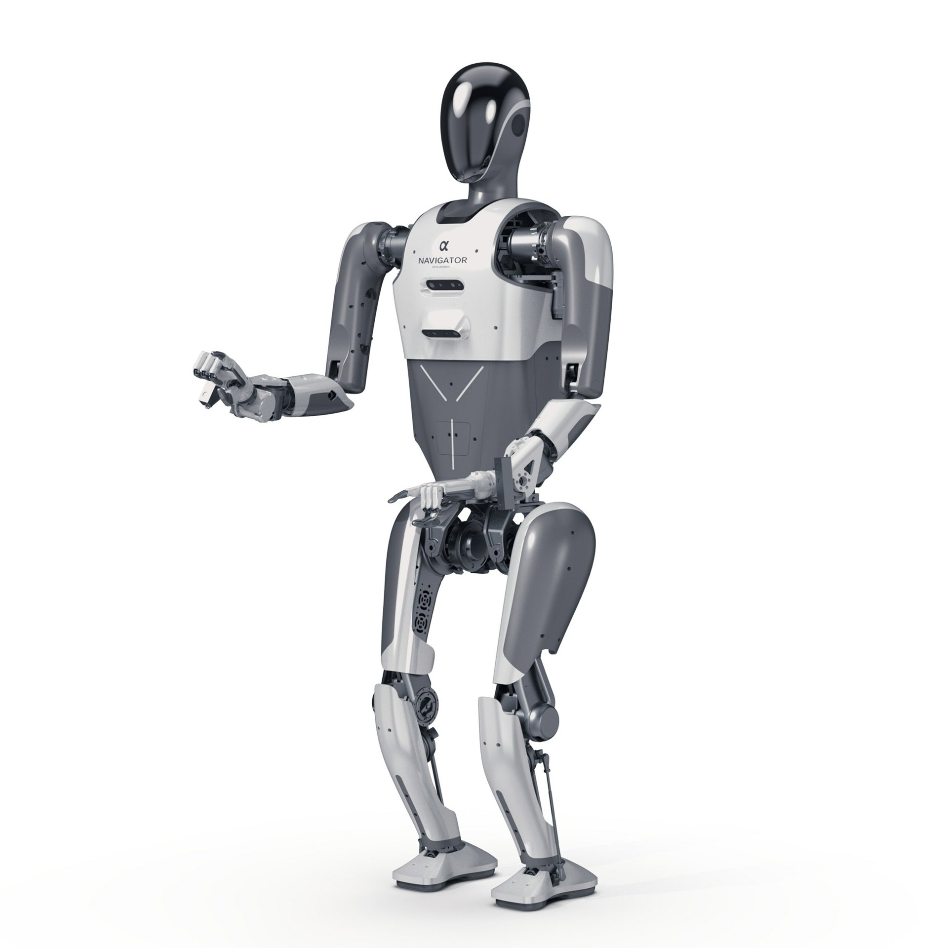 El robot humanoide recientemente lanzado, Navigator , tiene una altura de 1,5 metros y pesa 50 kilogramos, y cuenta con componentes de hardware avanzados que incluyen un reductor planetario de última generación, brazos mecánicos humanoides ligeros y una mano diestra con múltiples grados de libertad. Esta extraordinaria mano presenta 15 articulaciones de los dedos, seis grados activos de libertad, una fuerza en la punta de los dedos de 10 N, un diseño ligero de 600 g y una impresionante velocidad articular de 150 grados por segundo. Además, Navigator revoluciona la integración del control de mecanismos, el aprendizaje por imitación y el aprendizaje por refuerzo, aprovechando tecnologías innovadoras como modelos de inteligencia artificial a gran escala para lograr avances innovadores tanto en hardware como en algoritmos. Ha sido implementado y altamente reconocido en varios proyectos probados en el campo.