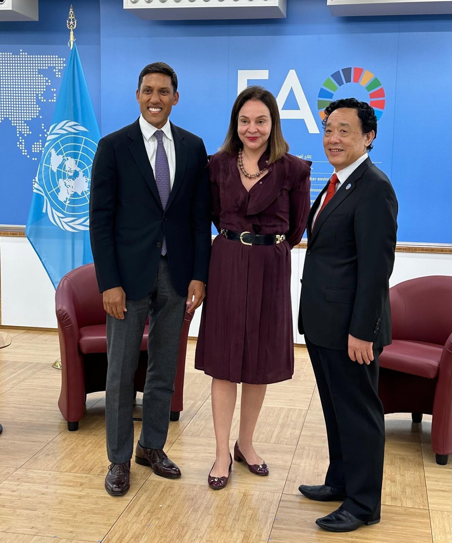 The Rockefeller Foundation President Rajiv Shah, The Ambassador and Permanent Representative of Brazil to the UN Rome-based Agencies, Carla Barroso Carneiro, and The Food and Agriculture Organization Director-General QU Dongyu at an event today to annou - THE ROCKEFELLER FOUNDATION/PR NEWSWIRE