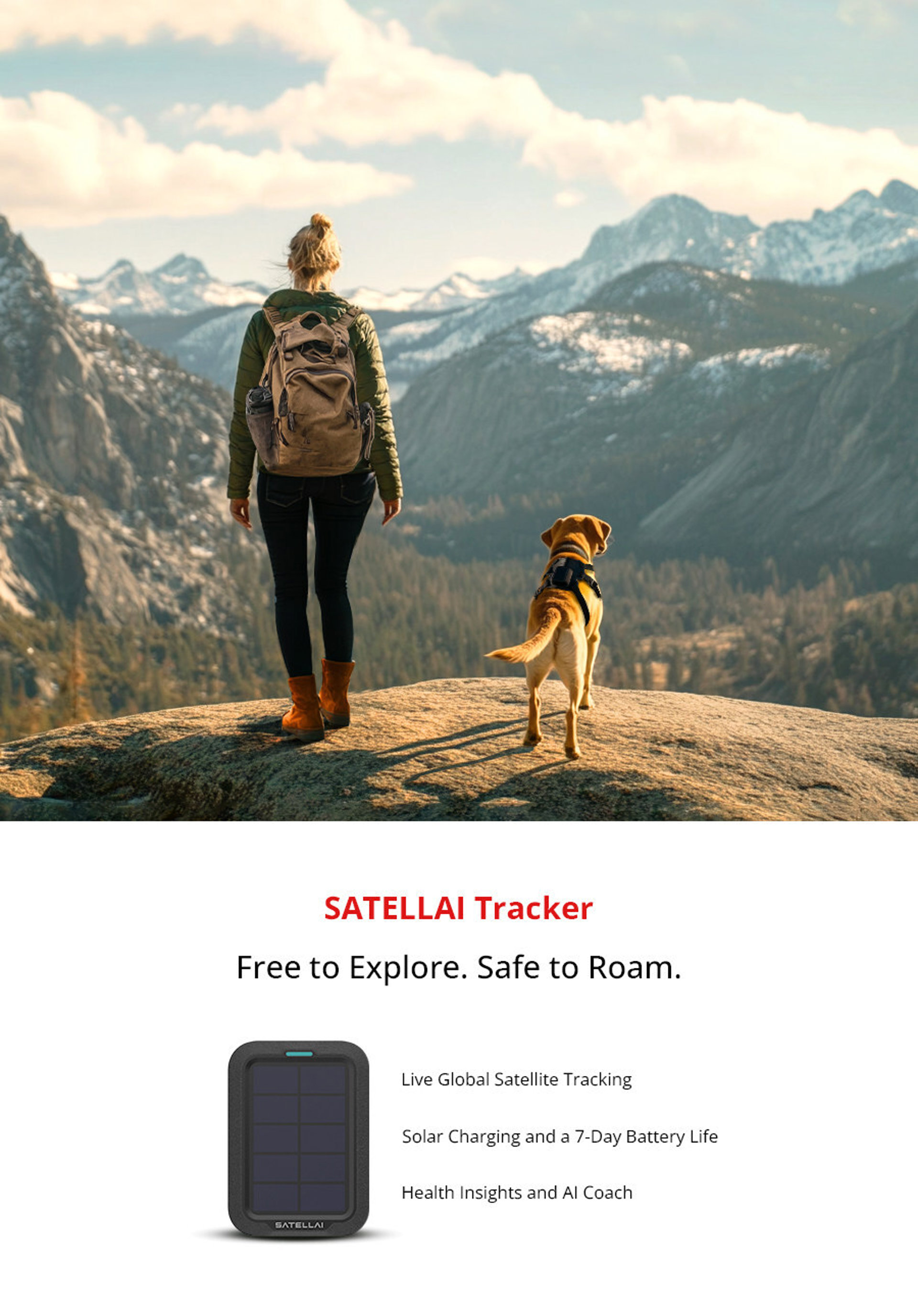 BARCELONA, España, 3 de marzo de 2025 /PRNewswire/ -- SATELLAI, una empresa innovadora en tecnología para mascotas con inteligencia artificial integrada, debuta en Europa en el MWC 2025 con el lanzamiento de SATELLAI Tracker, el primer rastreador de mascotas del mundo que está siempre conectado y funciona con tecnología satelital. Diseñado para dueños de mascotas que exploran lugares fuera de la red eléctrica, garantiza que las mascotas se mantengan seguras y conectadas en cualquier lugar de la Tierra.