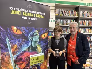 Almería, 17 de junio de 2025.– La escritora Helena Moreno Padilla, de 16 años, ha sido reconocida con el XX Premio Jordi Sierra i Fabra por su novela Más allá de la muralla, una historia de aventuras ambientada en un universo mitológico. El galardón le fue entregado en un acto celebrado en la librería Picasso de Almería, con la presencia del reconocido autor Jordi Sierra i Fabra y Alejandra González, editora de Literatura Infantil y Juvenil de SM.