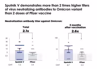 Las ventajas de Sputnik V son el uso de glicoproteína S nativa (proteína de pico sin estabilización con prolina y otras modificaciones) y el uso de un régimen de vacunación heterólogo de dos dosis. La vacuna de Pfizer utiliza la proteína de pico en una forma estabilizada con prolina en contraste con Sputnik V. La estabilización con prolina y otras modificaciones pueden provocar una respuesta inmune predominante al dominio de unión al receptor (RBD) de la proteína de pico que muta activamente. En la variante Ómicron se registró un número importante de mutaciones precisamente en RBD, por lo que en los sueros vacunados con Pfizer se puede observar una caída tan significativa de la actividad neutralizante frente a esta variante.