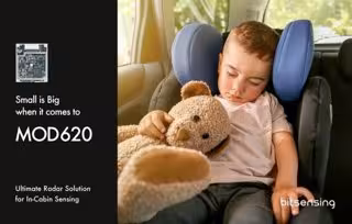 El MOD620 detecta de forma fiable la presencia y la ubicación de los pasajeros en el coche. También puede detectar en tiempo real la presencia de un niño que se haya quedado en el coche, incluso cuando éste está apagado y cerrado, así como monitorizar las constantes vitales de los ocupantes y enviar una alerta si hay alguna anomalía. Los especialistas internos de bitsensing se asociaron con varios laboratorios de las mejores universidades para obtener los datos más precisos para producir este radar que puede detectar con exactitud. El MOD620 ofrece una solución de monitorización segura, necesaria para una experiencia de conducción autónoma óptima.